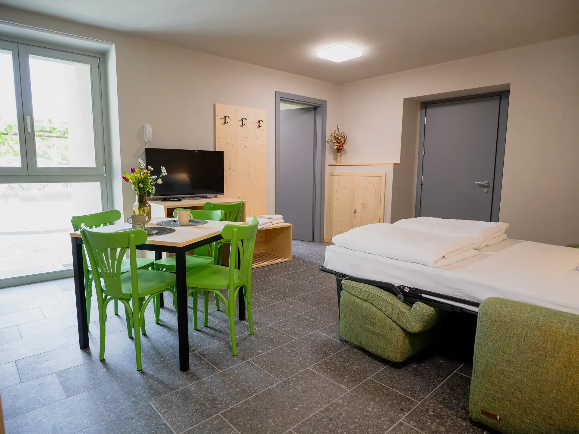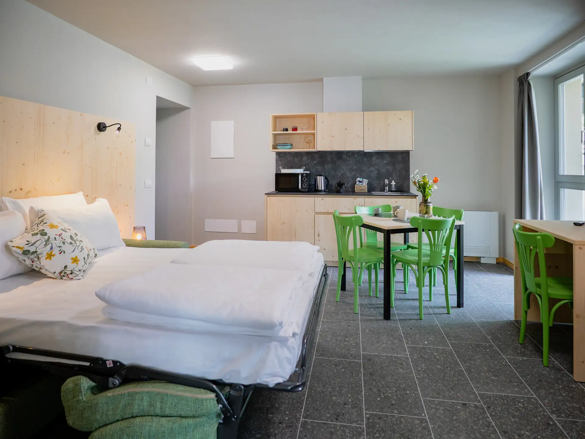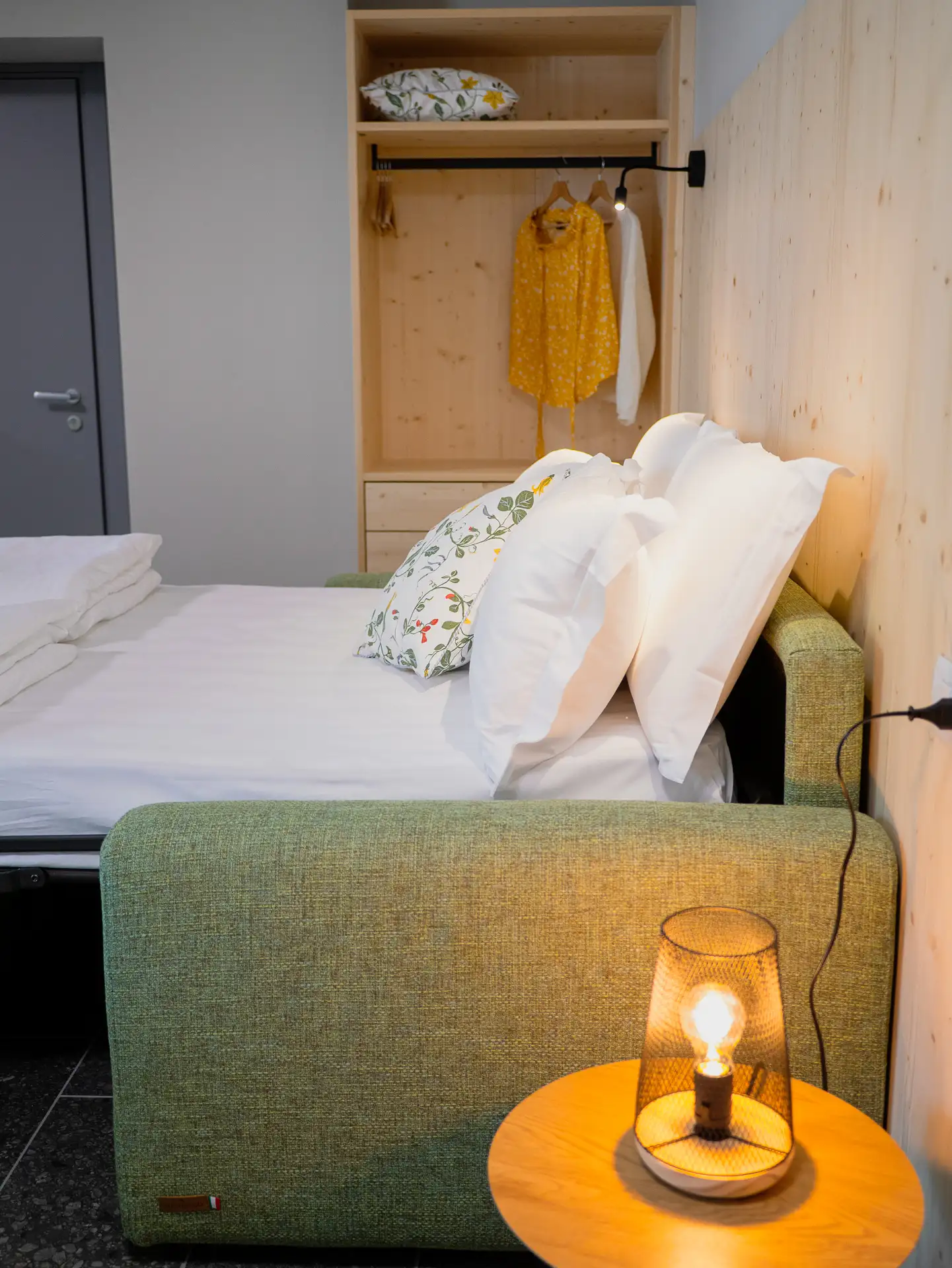 The masùn were the stables of the village, symbols of the simple and rural life that was led here, a refuge for animals: cows, sheep and horses The studio apartment on the ground floor recalls their warmth and familiarity. Thanks to its welcoming atmosphere, it is the perfect space for couples looking for a quiet refuge after a day of exploring the valley.